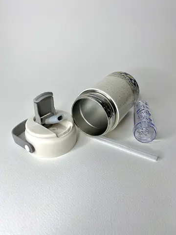 - دارای نی فلزی مقاوم برای نوشیدنیهای سرد و گرم