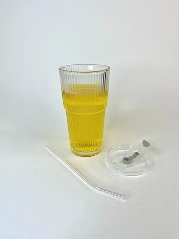 خرید لیوان اسموتی شیاردار دوتکه 540 میل بلوری با درب و نی آساننوش،مناسب انواع نوشیدنی سرد و اسموتی.شفاف، خاص و کاربردی برای مصرف روزمره و هدیه. از ماگوریا بخر.