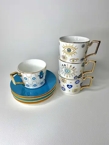 با ماگ و زیر ماگی طرح چشم زخم، زیبایی را به میز کار و لحظههای چایتان بیاورید! طراحی طلایی + چشم زخم محافظ + زیرماگی رنگی = یک هدیه خاص. همین حالا خرید کنید.