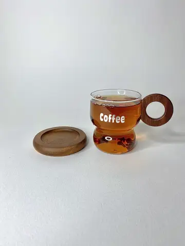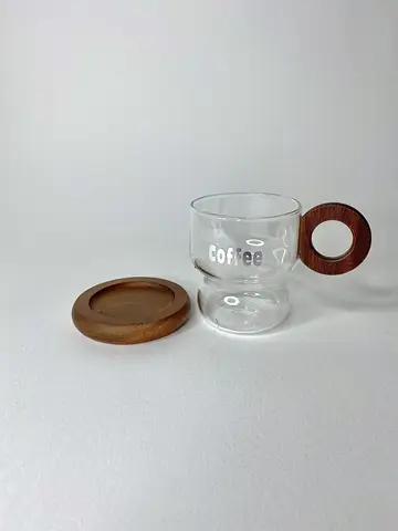 بدنه شفاف پیرکس در کنار دسته حلقه‌ای چوبی تیره، ترکیبی چشم‌نواز و گرم ایجاد کرده است. نوشته COFFEE روی بدنه لیوان، حس کافه‌های دنج و لحظه‌های آرام صبحگاهی را زنده می‌کند. چایخوری پیرکس دسته تیره چوبی انتخابی برای کسانی است که به جزئیات توجه می‌کنند و به دنبال زیبایی ساده اما عمیق هستند.